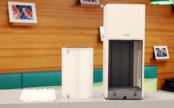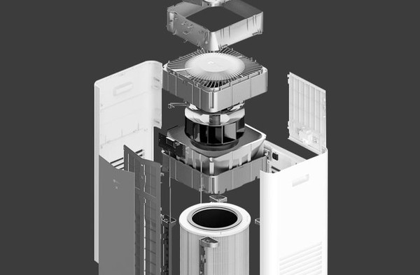 X50采用底部三面进风的风路设计,使得其滤芯采用圆筒式设计,三级过滤结构,最外面的初级滤网用来拦截灰尘、毛发、絮状物等大颗粒悬浮物,中间则是H13级别的HEPA滤网,可过滤PM.5、二手烟、花粉等可吸入的细微颗粒物,最后一层则是活性炭滤网,拥有950g改性活性炭,用来去除甲醛、TVOC和异味。其中HEPA滤网是由滤纸反复折叠而成的,其滤面积更是达到4平方米,可以确保在大部分使用场景下拥有一年的使用寿命,无须频繁更换,更为省心。