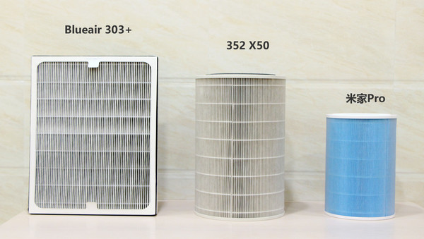 从三者滤网直观对比来看,352 X50跟米家PRO设计基本上相同,但是X50的木桶型滤网要对米家PRO大上一圈。Blueair 303+则为两层滤网,结构上也相对简单。