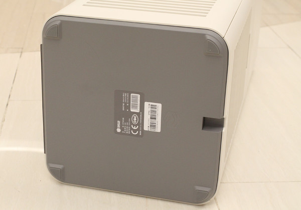 X50空气净化器底部当中是一张产品标签,上面是产品的型号、条码、生产日期等基本信息。在X50底部的四个边角还设有橡胶防滑垫。