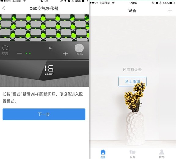 连接很简单,通过应用商城就能下载“352Air”这款APP,然后绑定你注册的账号。只需要按一下添加,然后根据提示操作,进入配置状态。